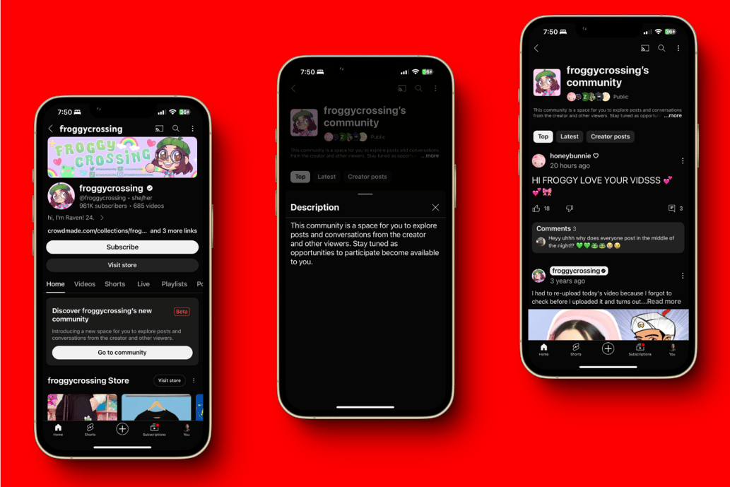 YouTube is currently beta-testing a new feature called Community Spaces with selected creators, including FroggyCrossing. This feature provides dedicated spaces where creators and their communities can share posts, interact, and engage in conversations. Communities can be either public or private, and users have the option to filter posts by Top, Latest, and Creator Posts.