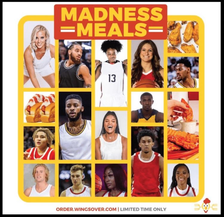 Wings Over is partnering with over a dozen men's and women's basketball players to create Madness Meals at its locations nationwide. University of Connecticut's Christyn Williams, Providence College's Jared Bynum, Ohio State University's Kateri Poole, and others customized their own Wings Over meals. The meals are available for a limited time at select Wings Over locations. Athletes are promoting the meals across social with promo codes.