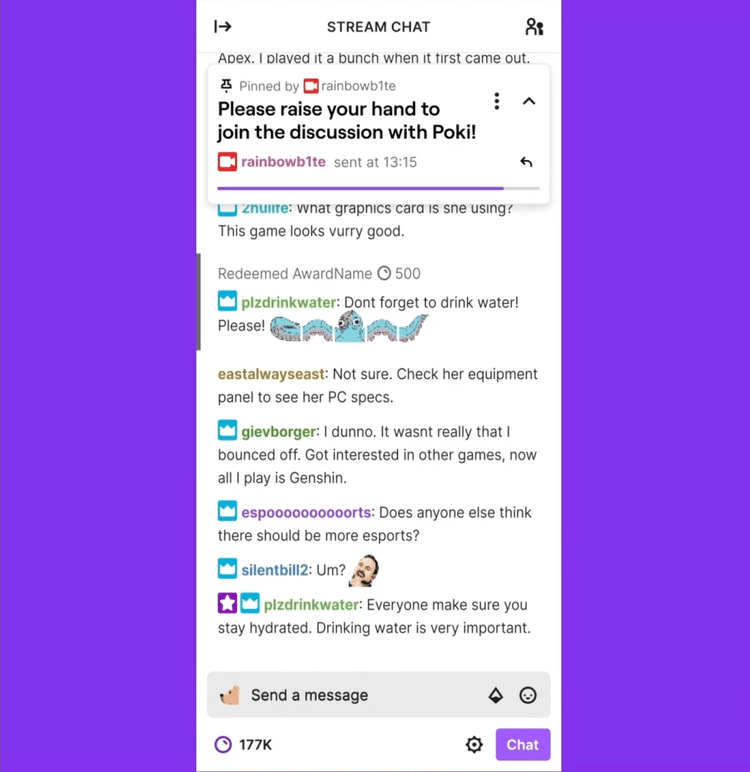 Like existing pinned comment features, creators can use Pinned Chat to highlight important and relevant messages to better engage, interact, and get input from their communities. Creators who host talk-style streams, where viewers contribute with content through questions and comments, will find this valuable.