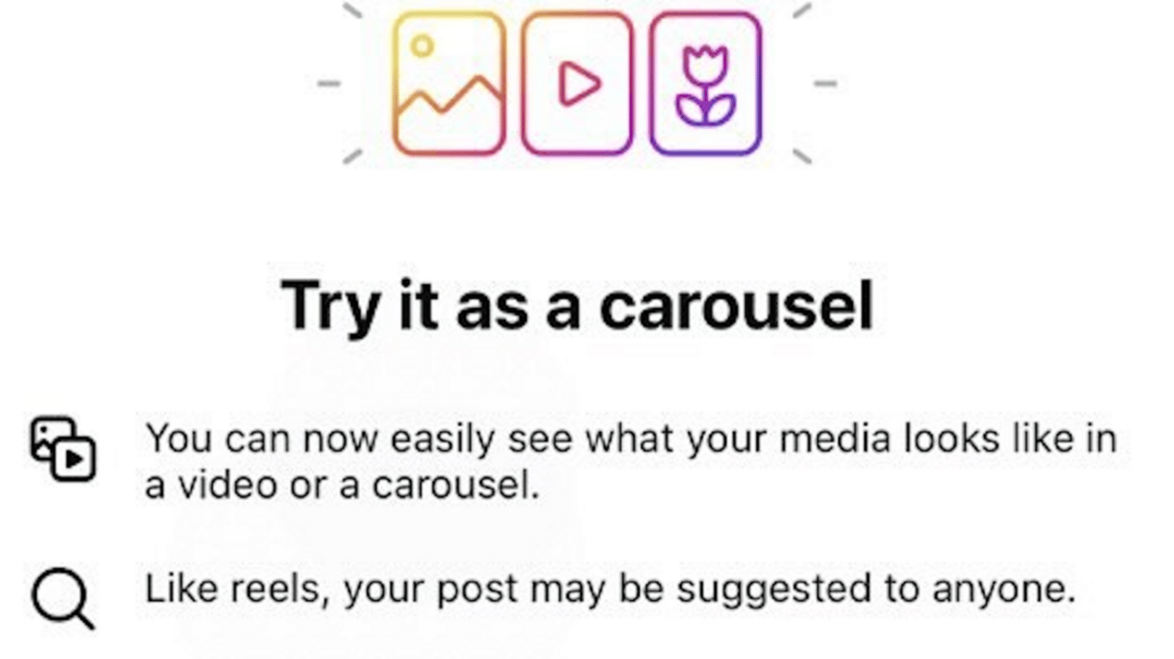 Instagram is testing a feature that allows users to preview content as either Reels or Carousels, further signaling the platform’s view of these formats as interchangeable.