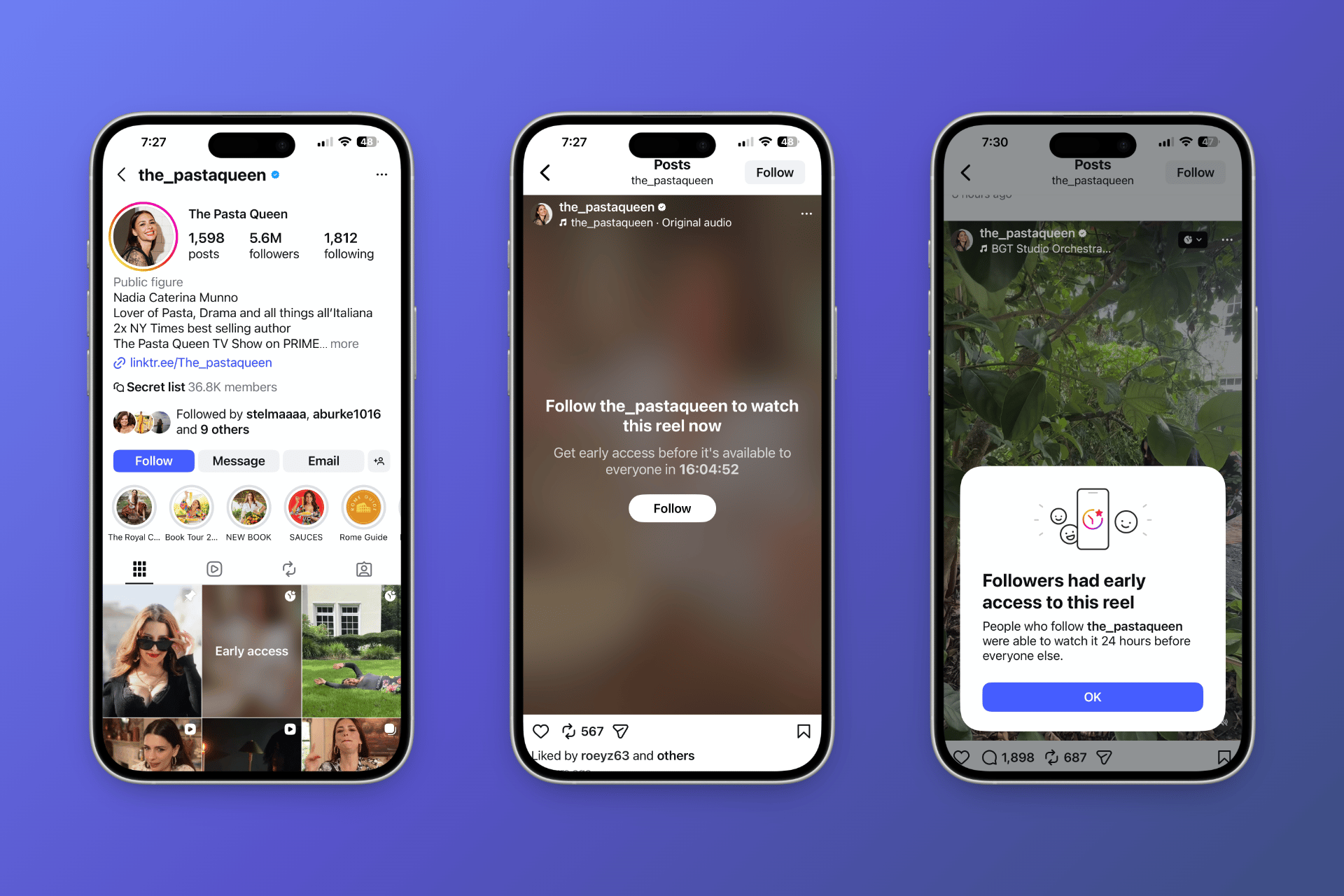 Instagram is testing a new Early Access feature that lets creators post a Reel exclusively for their followers for the first 24 hours before it becomes public.