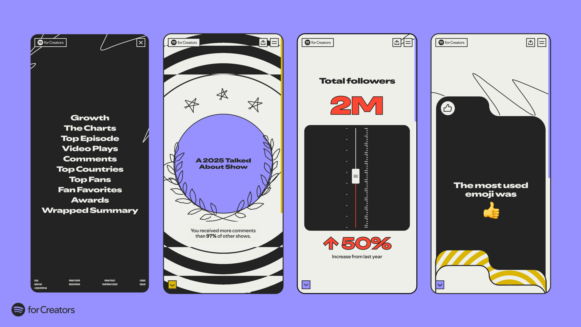 Artists, songwriters, creators, authors, and even advertisers received their own Wrapped experiences with data on growth, fan engagement, and milestones. Spotify also shared top lists for artists, songs, albums, podcasts, and audiobooks.