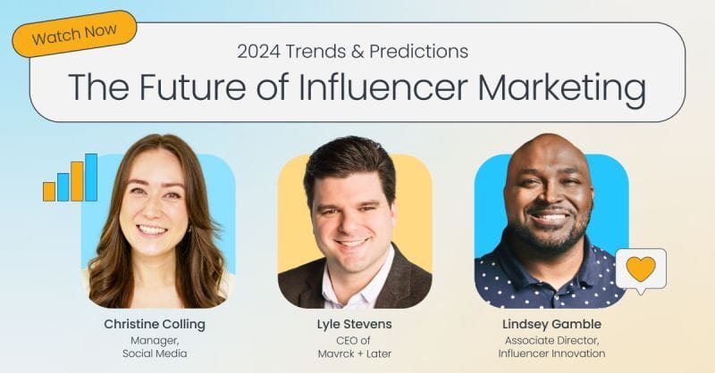 Prediction season is here! Mavrck + Later released our free on-demand webinar featuring predictions for the future of influencer marketing and social media in 2024.