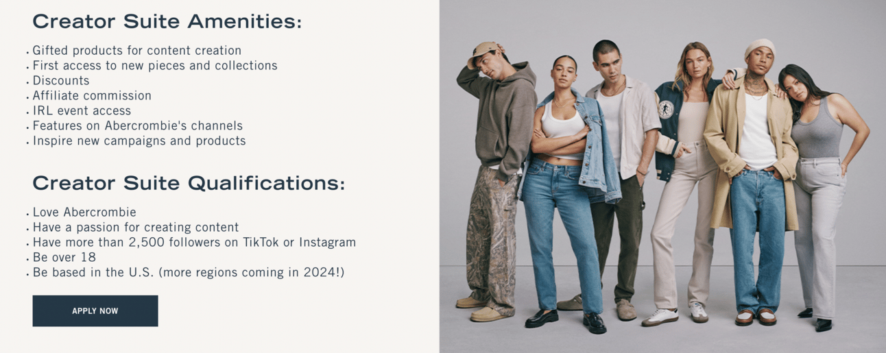 Abercrombie & Fitch continues the streak of retail creator programs with the Abercrombie Creator Suite.