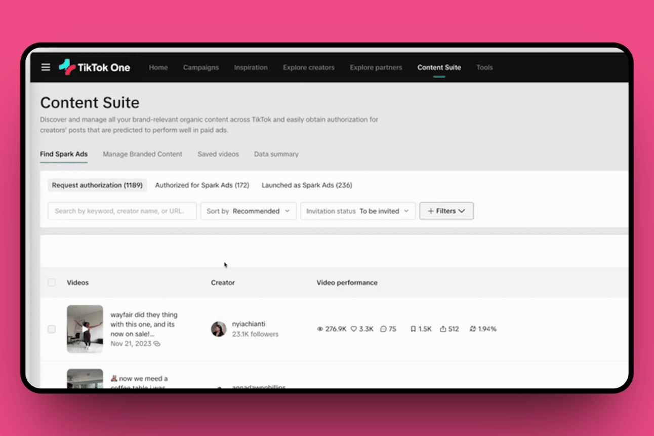 TikTok unveiled the TikTok One Content Suite, a centralized hub where brands can view and filter UGC that mentions them. Brands can request creator permission to boost posts as ads, aligning TikTok with similiar new features from Meta and YouTube. It reflects a broader trend that organic, everyday content is increasingly fueling paid performance and playing a bigger role in influencer marketing strategies.