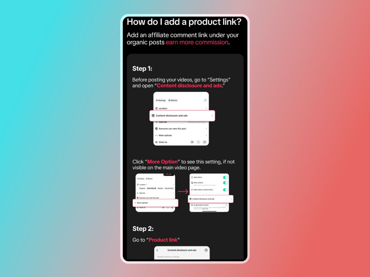 According to in-app notifications received by creators, when publishing a video, they can tap More Options, toggle on Content Disclosure and Ads, and check Branded Content. Below this, they’ll find an Add a Product Link option, allowing them to insert URLs for product links from participating affiliate networks