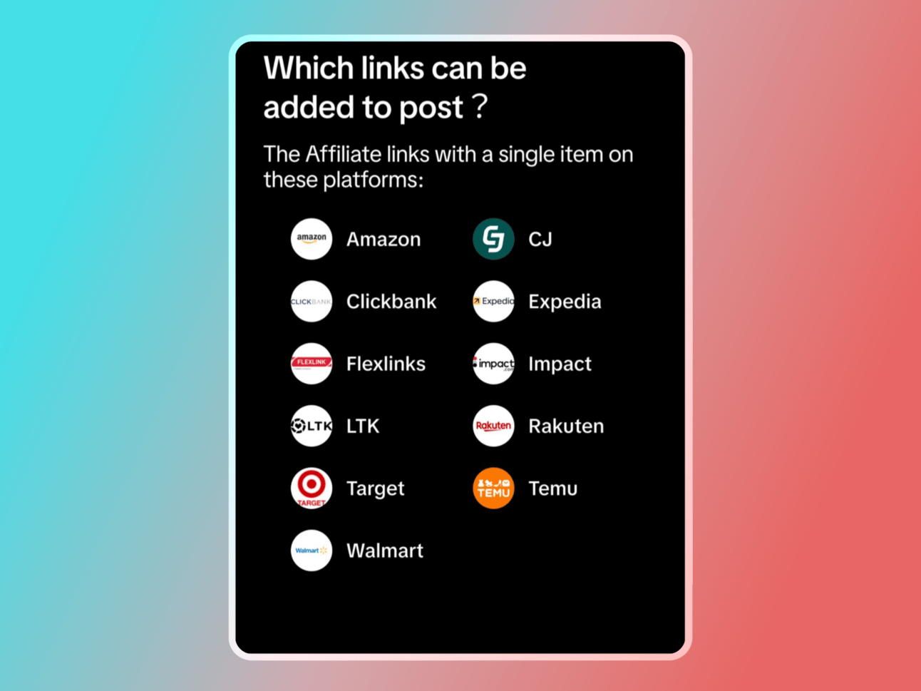 TikTok is testing a new integration with various third-party affiliate networks. It allows creators to add affiliate product links from Amazon, Walmart, Target, LTK, Rakuten, Impact, CJ, Expedia, Clickbank, Flexlink, and Temu.