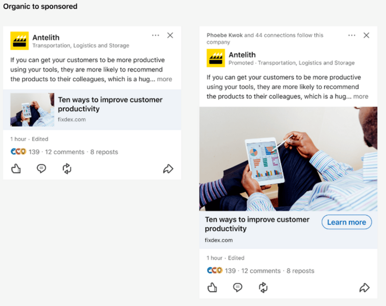 LinkedIn has reduced the size of images and third-party article link previews for organic posts. Now, organic posts display small thumbnail preview images, while Sponsored Content with links features larger images and link previews.