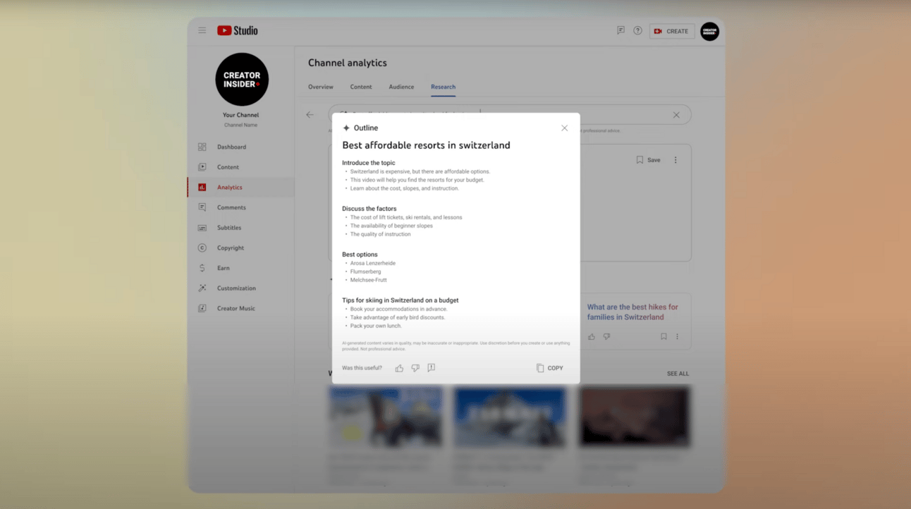 Why It Matters: "Brainstorm with Gemini" offers similar functionality to Ideas and Outline but is based on Google's large language models rather than YouTube-specific data. This broader dataset could potentially lead to more robust and creative outputs for creators than what is generated from YouTube’s data alone.