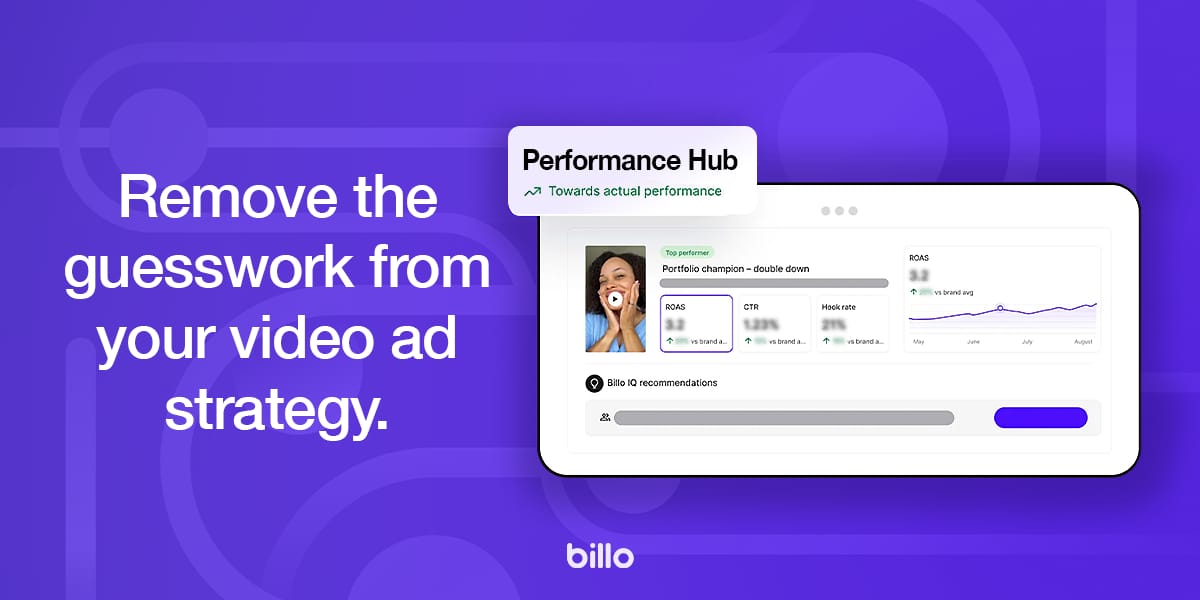 Ad Performance and Iterations: Once your ads are live, Billo tracks their performance against each other and industry standards to provide you with iteration suggestions and improvements.