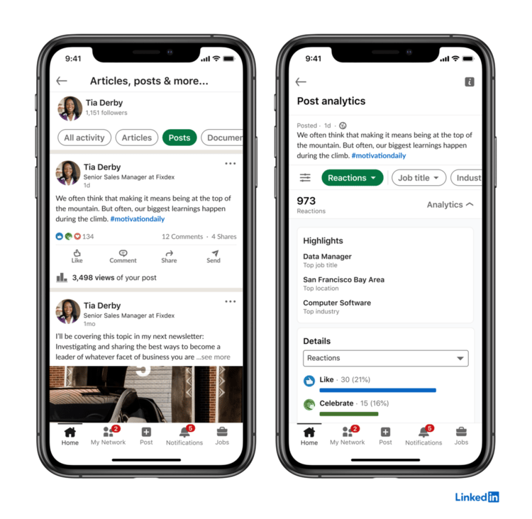 LinkedIn previewed upcoming post analytics. LinkedIn's Chief Product Officer, Tomer Cohen, announced that creators will soon have access to new analytics on individual posts and overall performance across content and audience. Creators, for example, will be able to see how their content is performing with viewers who have certain job titles and the industries they are in.