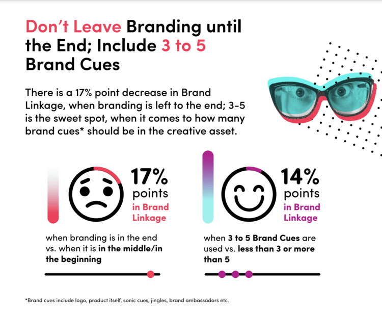 The report also showed that when 3-5 Brand Cues are used instead of fewer than 3 or more than 5, there is a 14% percent increase in Brand Linkage.