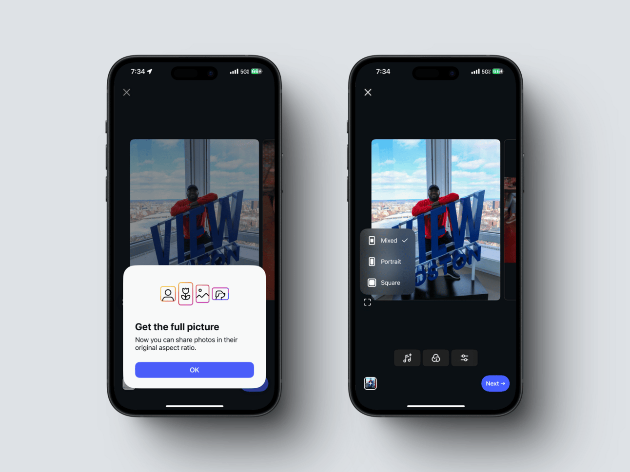 Instagram is expanding access to its feature that lets users share photos in their original aspect ratio. With the 'Mixed' option, users can upload carousels featuring photos with varying aspect ratios while maintaining each photo's original dimensions. A previous iteration of this feature appeared last year, but this version is more user-friendly.