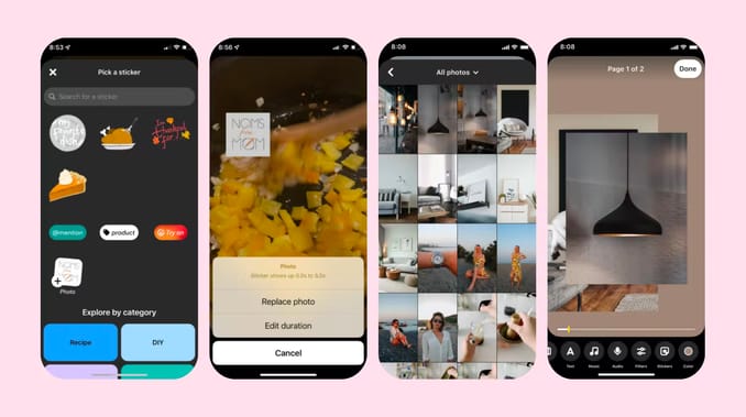 Pinterest added new editing features for Idea Pins. Pinners now have access to tools like a countdown timer, set recording duration, hand drawing tool, hex code picker, and images as backgrounds. Pinterest also updated its sticker library with more illustrative and decorative stickers, which have color customization and animation options. Creators also can upload their own images like photos or logos to use as stickers.