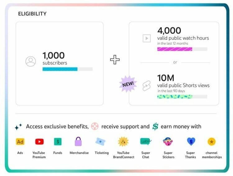 Shorts-focused creators can now apply to the YouTube Partner Program if they meet the threshold of 1,000 subscribers and 10 million Shorts views over 90 days. Creators accepted into the program will have access to ways to make money through ads and Fan Funding, including Super Thanks, Super Chat, Super Stickers, and Channel Memberships.
